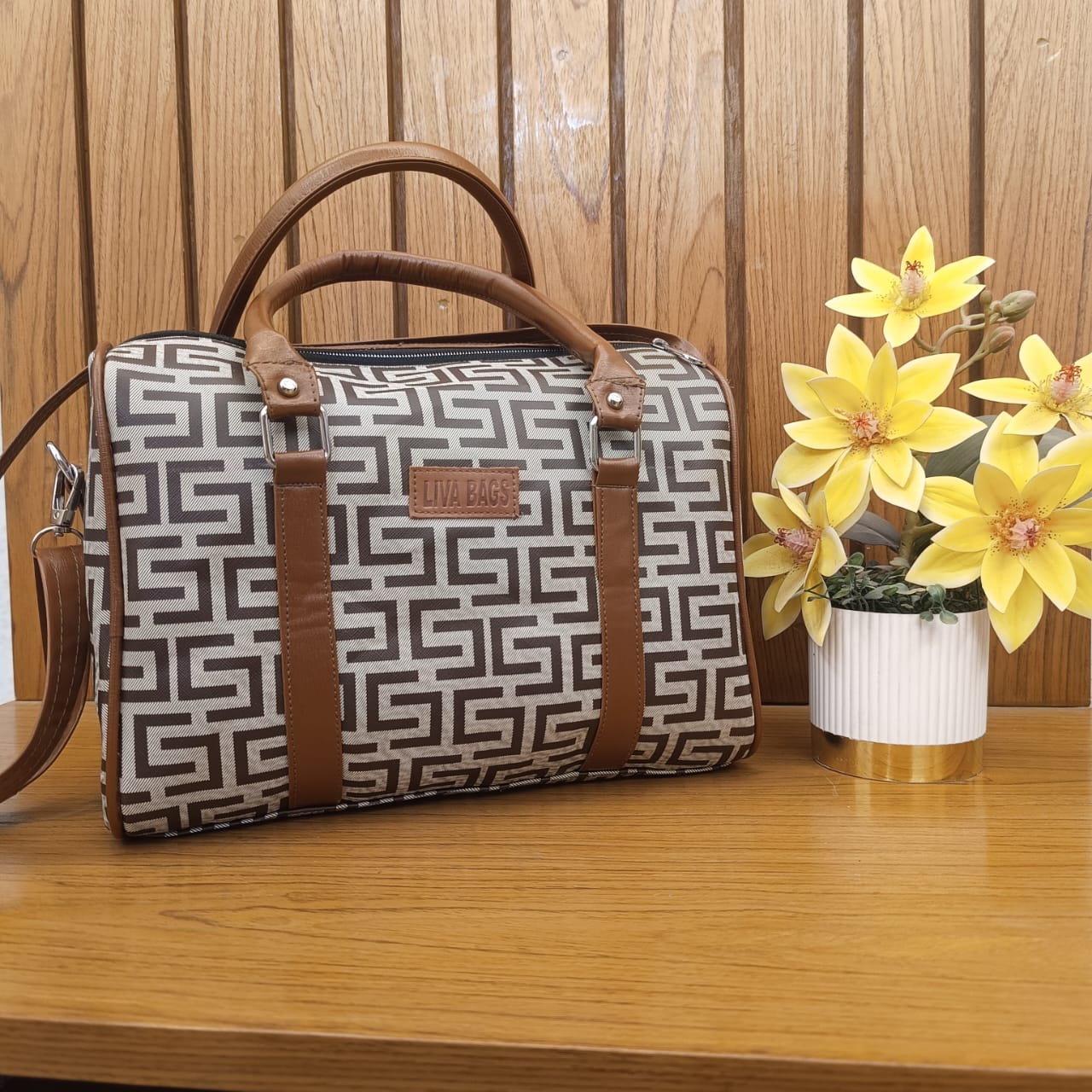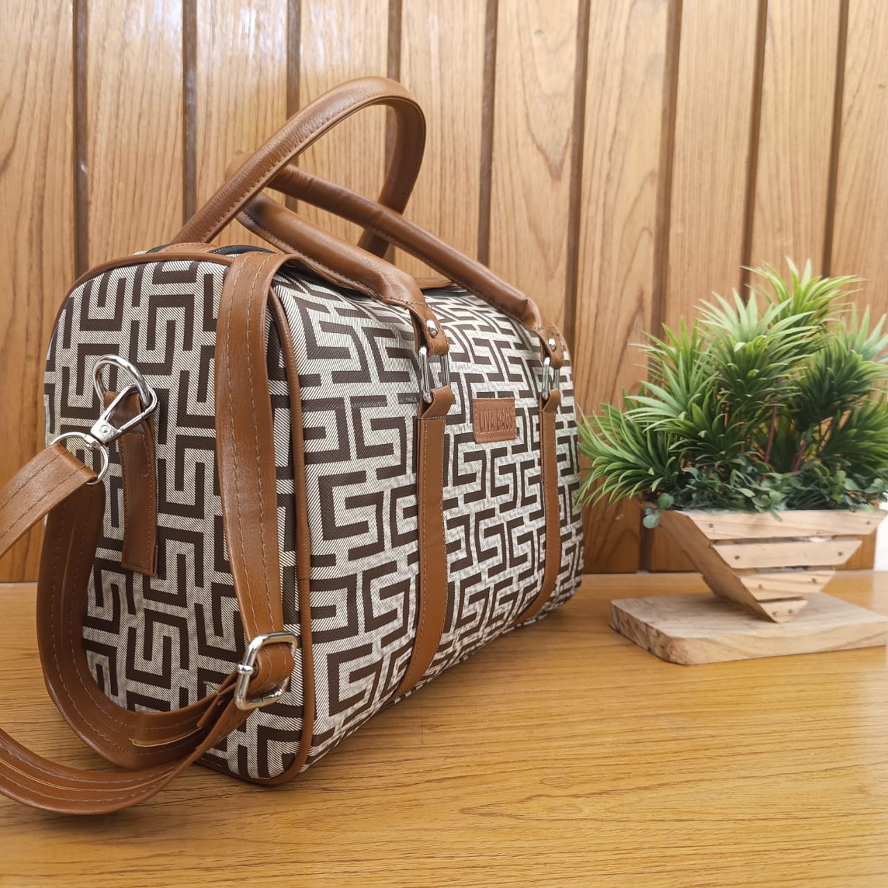 ব্যাগ দুই ভাবে নেওয়া যায়, সাইডে দুই হ্যান্ডেলের মাধ্যমে এবং কাঁধে বেল্টের মাধ্যমে।